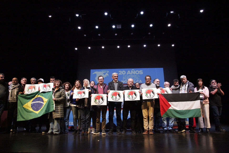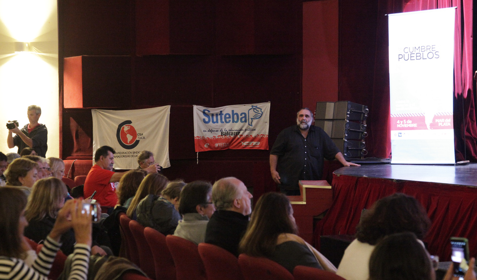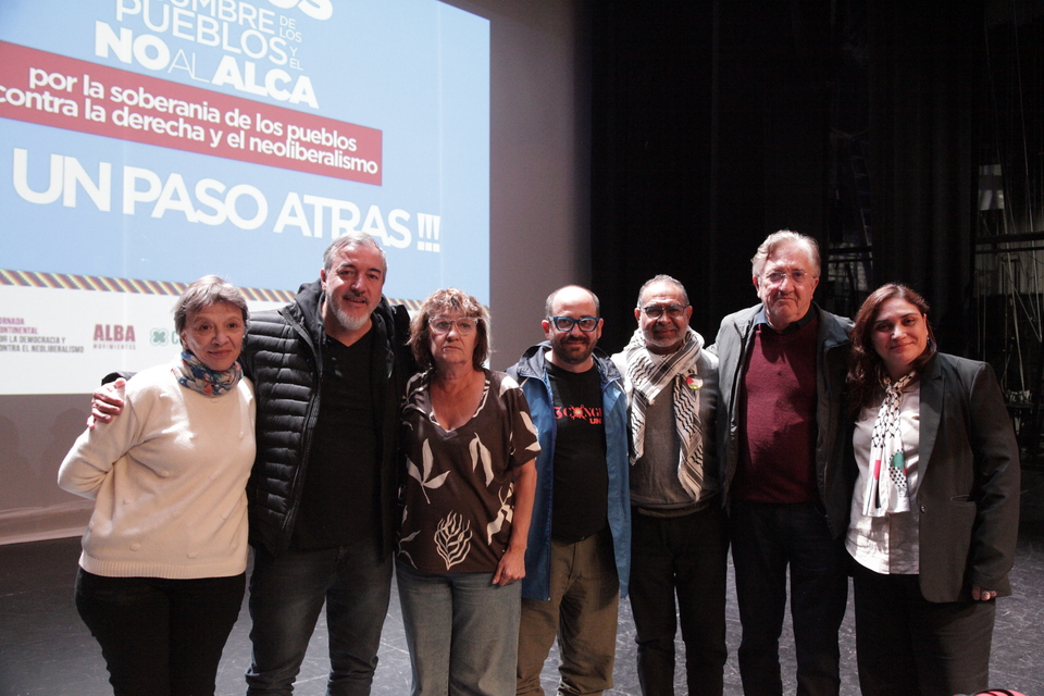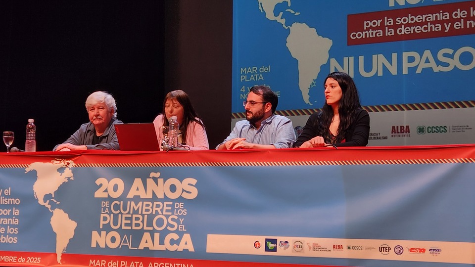 Por último, Andrés Larisgoitia (CTA-T), Julián Aguirre (CTA-A), Marita González (CGT) y María Cardelli (UTEP) compartieron un documento de cierre de la primera jornada de conmemoración de los 20 años del No al ALCA.