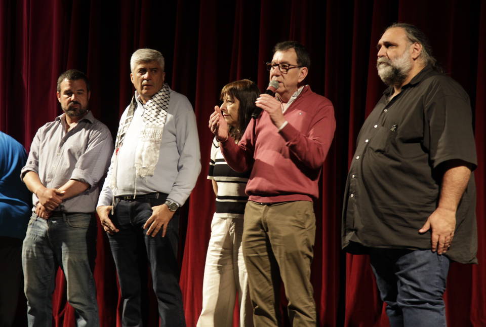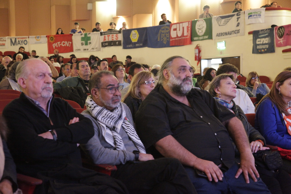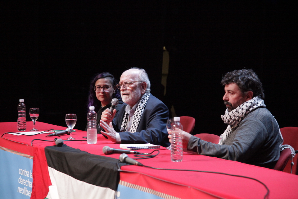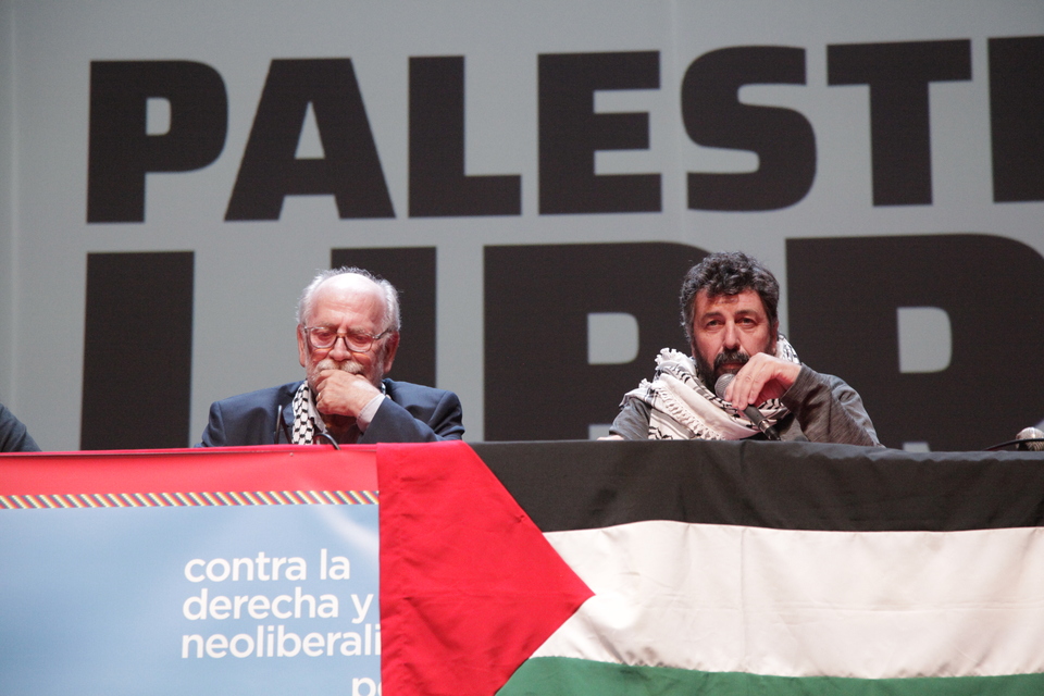 Luego, se realizó un acto solidario con el pueblo de Palestina con la presencia de Carlos "Cascote" Bértola, militante por los derechos humanos, capitán de una de las embarcaciones de la Flotilla Libertad que llevó ayuda humanitaria a Gaza, quien fue detenido por seis días en una prisión israelí, y Rafael Araya Masry, presidente de la Confederación Palestina, Latinoamericana y del Caribe, con la moderación de Yésica Leyes, secretaria de Juventud de la CTA-T y presidenta del Comité de Juventud Trabajadora de la CSA.