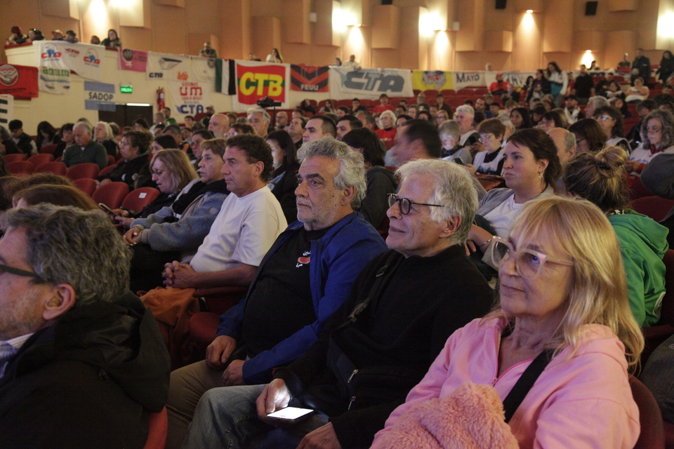 Durante la primera jornada, Adolfo Aguirre (CTA-A) brindó los saludos de bienvenida, junto a Roberto Baradel (CTA-T), Marita González (CGT), Alejandro Rusconi (Secretario de Hábitat, Tierra y Vivienda de la Defensoria del Pueblo de PBA) y Manuel Bertoldi (ALBA Movimientos).