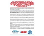LOS/AS REPRESENTANTES DEL PUEBLO EN LA LEGISLATURA BONAERENSE DEBEN APROBAR LAS LEYES QUE GARANTICEN EL FUNCIONAMIENTO DEL ESTADO PROVINCIAL Y EL FORTALECIMIENTO DEL SALARIO DE TODOS/AS LOS/AS TRABAJADORES/AS