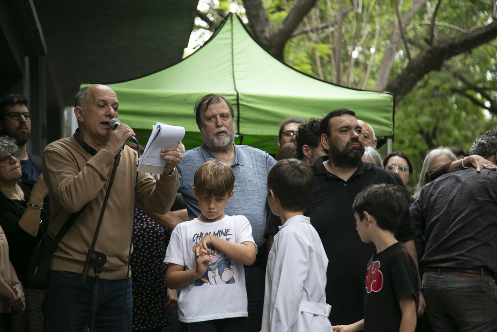 Durante el acto, que contó con la presencia de familiares, compañerxs de militancia, funcionarixs locales, vecinxs y representantes de Sindicatos, como el SUTEBA y la CTA Prov. Bs. As. Su hermana Ana reafirmó la decisión de continuar "levantando las mismas banderas de Justicia Social por la que lucharon nuestras compañeras y compañeros", uniendo así el legado de “Maru” con las luchas del presente por un país más justo. También habló su hermano Carlos; Leonardo Fossati, Subsecretario de DDHH del Municipio; María Eugenia Flamini por la AJB y Gonzalo Riquelme, militante universitario.