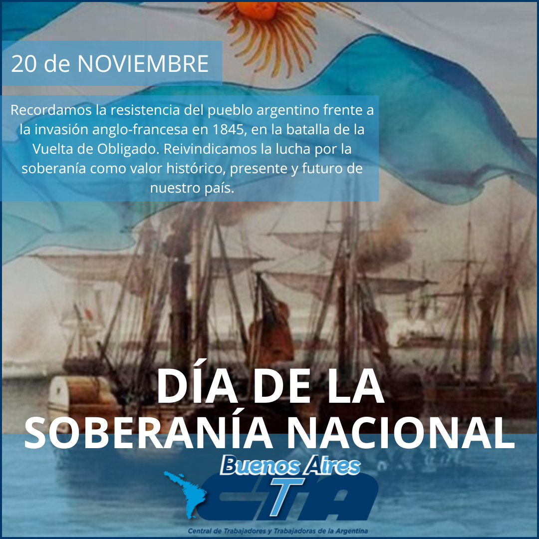 Hoy es 20 de noviembre, Día de la Soberanía Nacional, en conmemoración de la Batalla de la Vuelta de Obligado, ocurrida el 20 de noviembre de 1845. Ese día, las fuerzas militares y populares argentinas pusieron cadenas en el río para impedir el avance de una poderosa flota anglo-francesa que pretendía remontar el Paraná y comerciar libremente sus productos, en perjuicio de nuestra incipiente industria nacional y la de Paraguay.