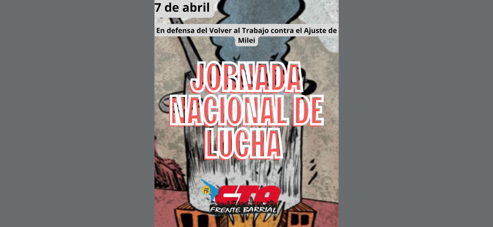 El Frente Barrial CTA convoca a una jornada de protesta en todo el país bajo la consigna "En defensa del Volver al Trabajo", manifestándose en contra de las recientes medidas de ajuste del Gobierno Nacional.