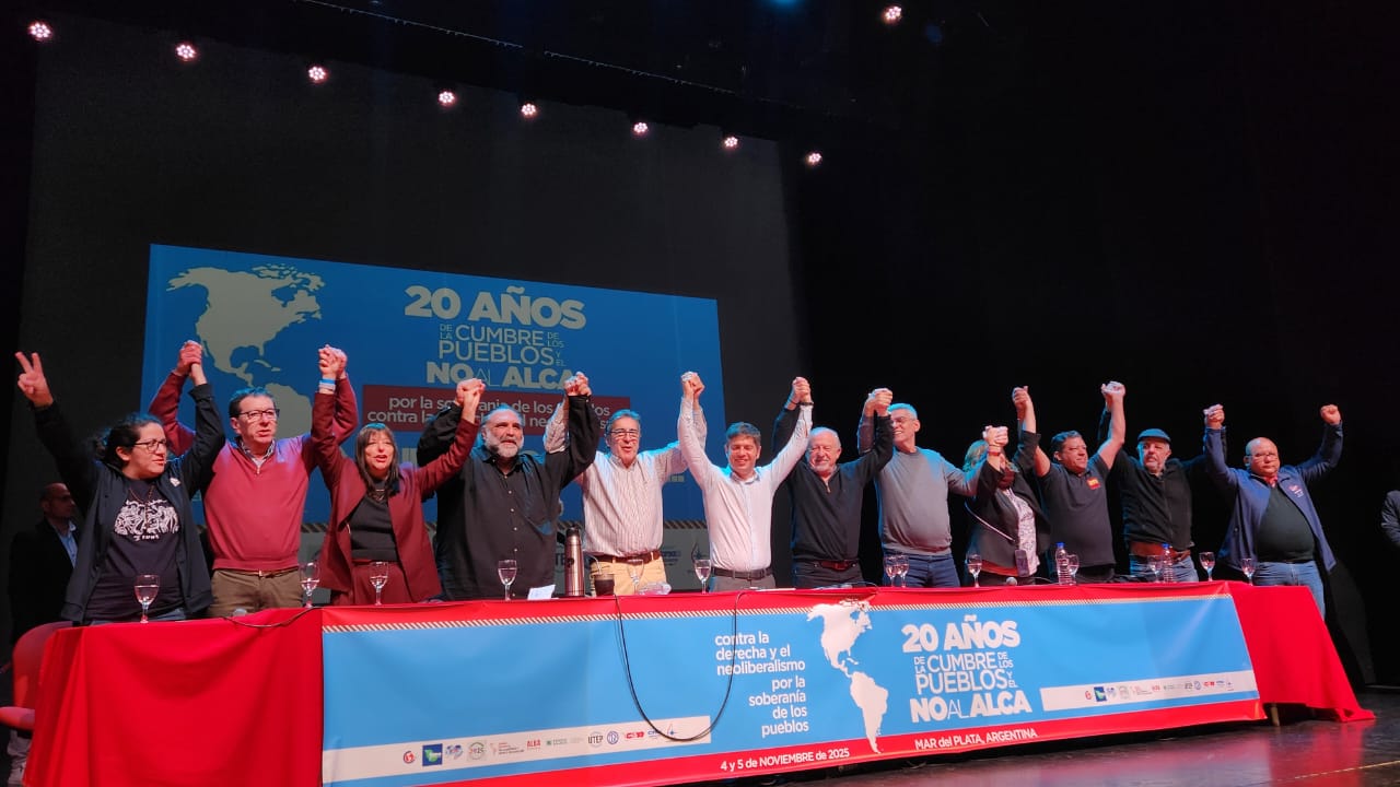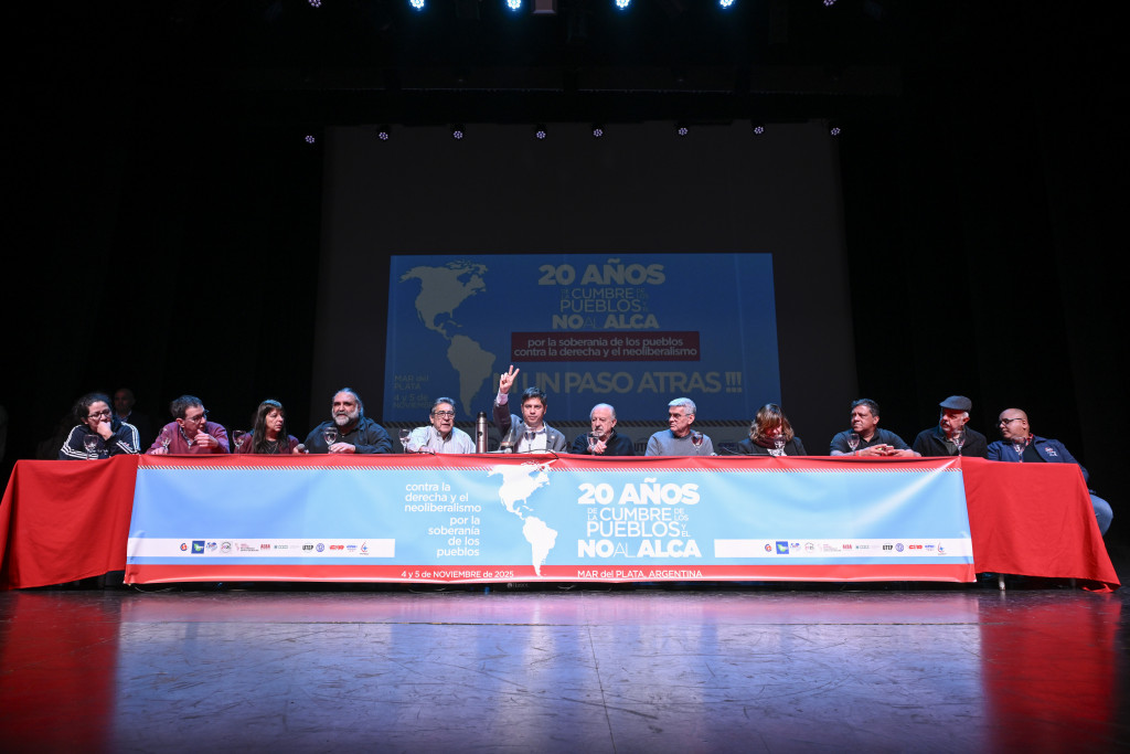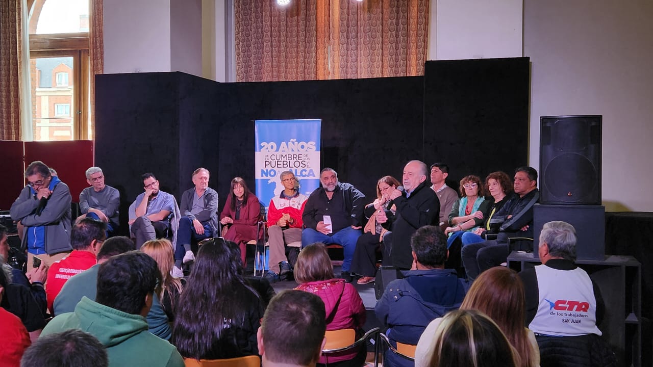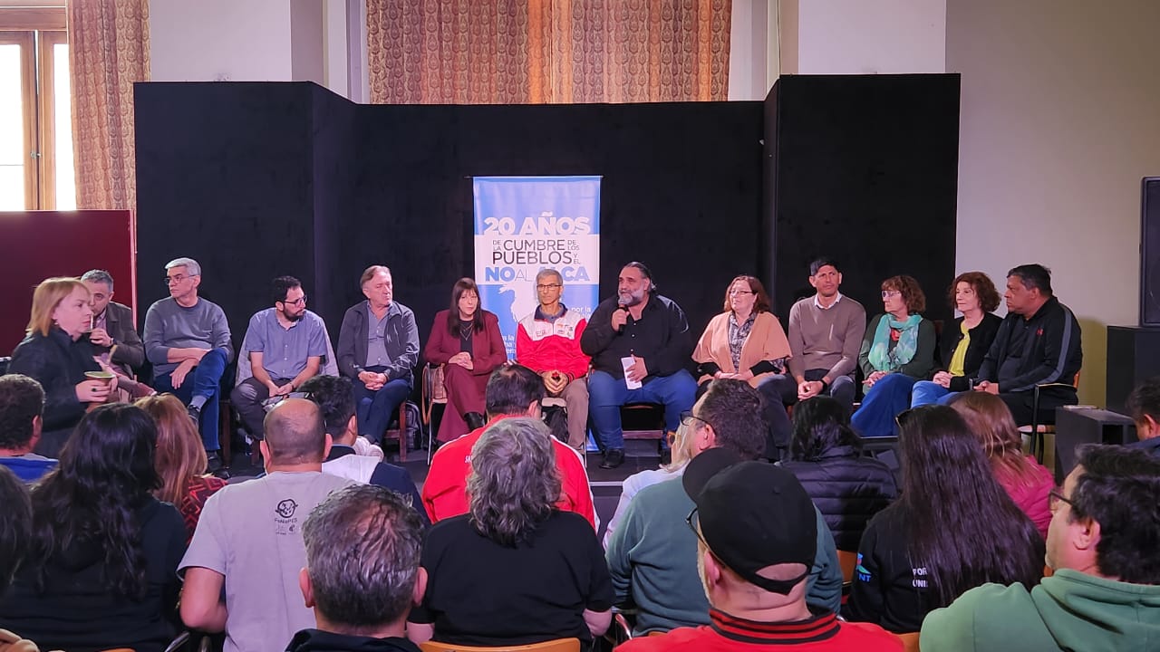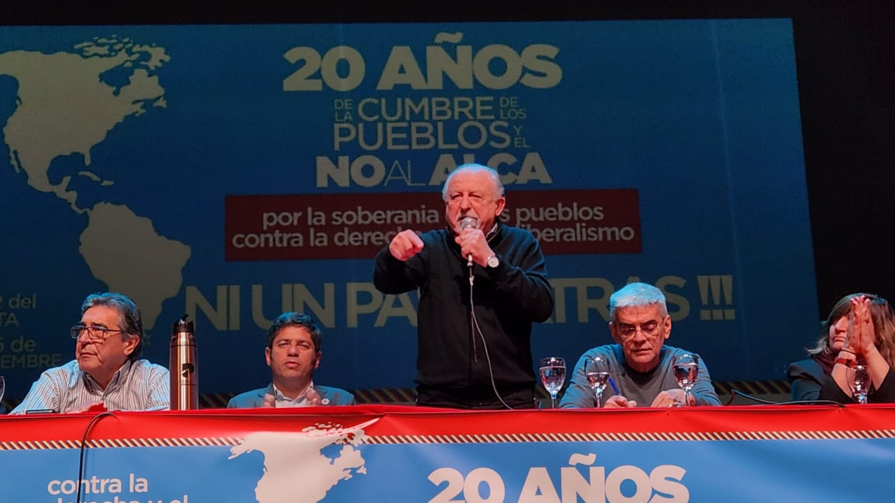 Mientras que al mediodía tuvo lugar el Acto central en conmemoración de los 20 años del No al ALCA, con la participación de Rafael Freire (Sec. Gral. CSA), Adilson Araujo (Pres. CTB Brasil – FSM), Mónica Valente (Sec. Ejec. Foro de Sao Paulo), José Olivera (Sec. RR.II. PIT-CNT), Roberto Baggio (Dir. Nac. MST), Hugo "Cachorro" Godoy (Sec. Gral. CTA-A), Hugo Yasky (Sec. Gral. CTA-T), Marita González (RR.II. CGT) y Johanna Duarte (Sec. Gremial UTEP).