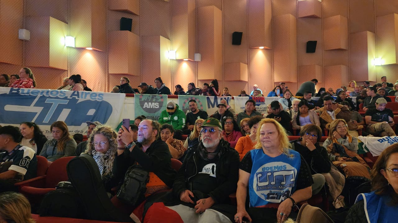 Por la mañana se desarrollaron, en el Teatro Auditórium y en las sedes gremiales de ATE, Luz y Fuerza y La Bancaria, cuatro mesas de debate simultáneas sobre Movimiento Sindical, Movimiento de Mujeres, Juventudes y Movimientos Sociales.