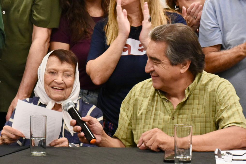 La presidenta de Madres de Plaza de Mayo Línea Fundadora, Taty Almeida, señaló: “Hoy estamos aquí demostrando que la unión hace la fuerza. Y hoy debemos estar más unidos que nunca porque un pueblo unido jamás será vencido”.